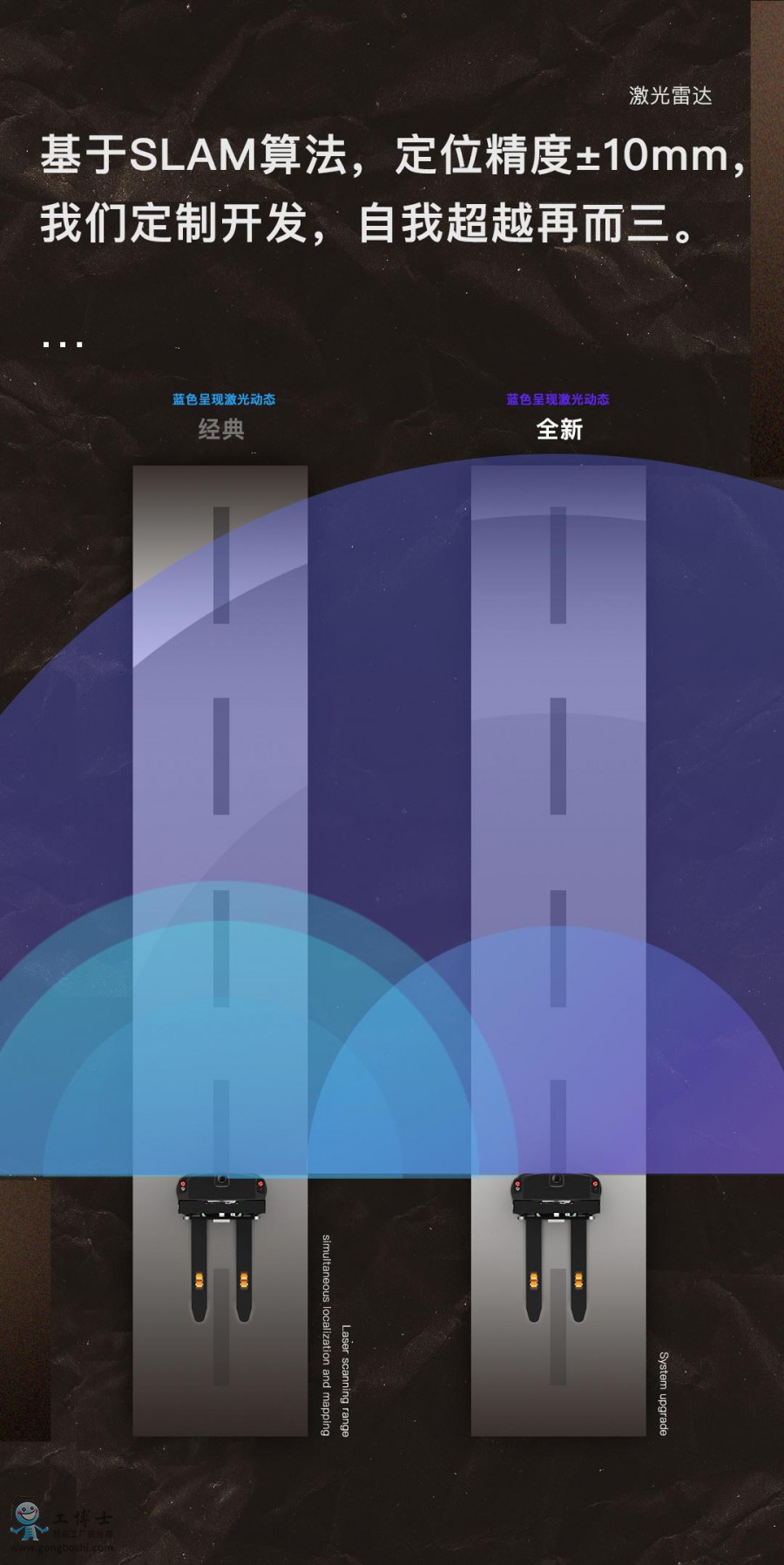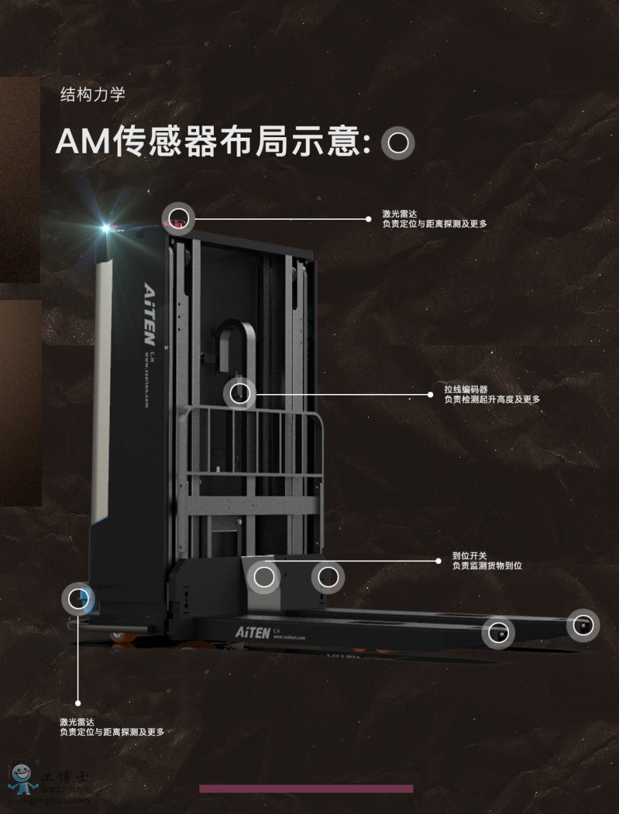 海豚之星AGV機器人新款車型面世,窄通道里也可以進行堆垛,充電速度更快,性能更加優化,行駛速度更迅速。同樣可以跨樓層進行運作,幫助客戶減輕搬運壓力,車身裝有多重傳感器,激光雷達、避障雷達、貨物到位檢測、拉線編碼器等等,給您更簡單、方便的操作、運行過程,定位可以達到±10mm,更加**。24小時連續運行,自動排隊充電,讓客戶更省心。幫助客戶減少人工成本,大幅度提高生產、工作效率,降低出錯率,同時保障工人的安全。