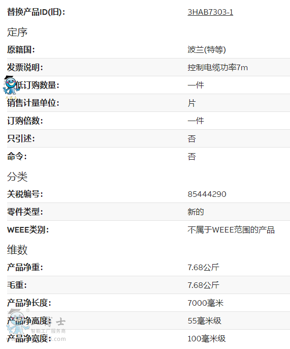 ABB機(jī)器人控制柜連接線動(dòng)力線纜3HAC2492-1