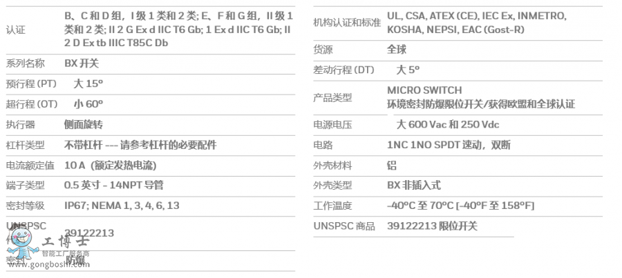 該 MICRO SWITCH BX/BX2 系列為全球各地的危險或爆炸環境提供堅固耐用的開關。為了符合防爆開關的要求,開關外殼內具有火焰通道,能夠容納和冷卻可導致開關外爆炸的高溫氣體和煙霧。