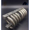 2、結構:鋼絲繩隔振器是由鋼絲繩繞成螺旋狀并固定在沿螺母布置的兩塊金屬板之間制作而成的,它的剛度與阻尼取決于鋼絲繩的直徑、股數、圈數及纏繞方式和尺寸.它是一種具有非線性特性和干摩擦阻尼的新型隔振器,采用多股鋼絲按一定方向纏繞而成的鋼絲繩作為彈性元件,具有明顯的遲滯特性,其能量耗散來源于鋼絲間的摩擦、擠壓、滑移。