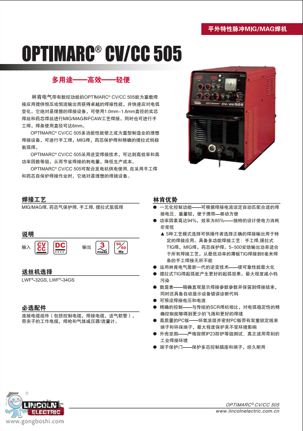 林肯多功能氣保焊機(jī)CV/CC 505半自動(dòng)氣保焊機(jī)