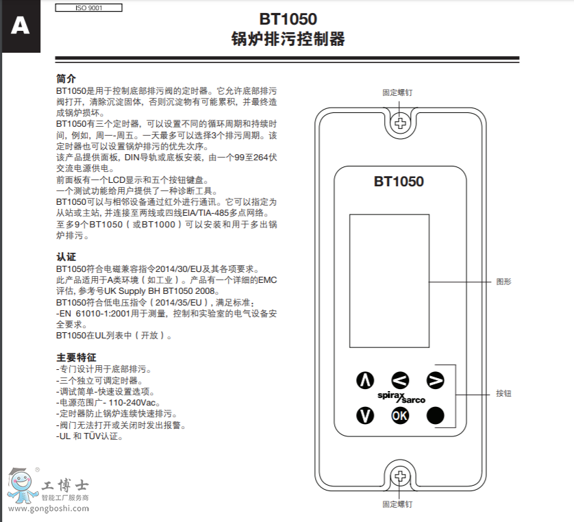 斯派莎克Spirax Sarco:BT1050 鍋爐排污控制器
