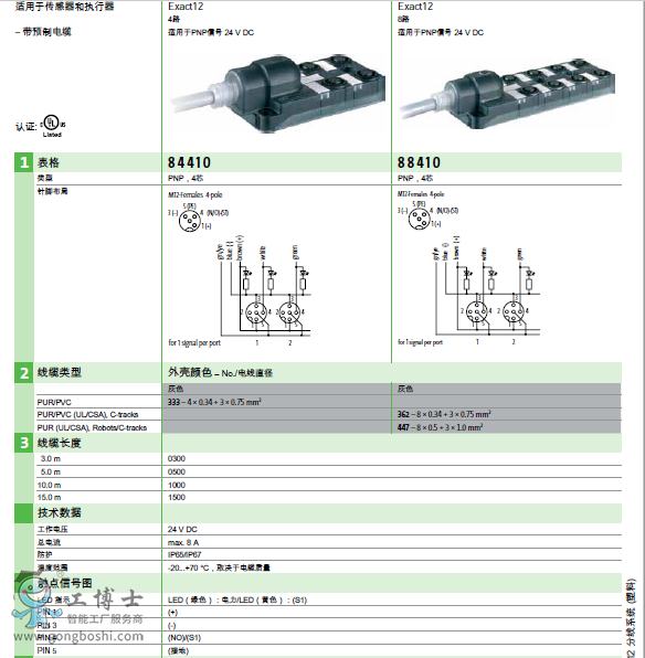 • 配預制長度的主電纜和螺釘插頭端子