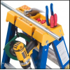 OBEL00系列玻璃鋼人字梯又稱電工工作站,是專門為電力作業需求而設計的一款產品。電工工作站頂蓋可放置各類工具,梯身可放置大小絕緣線盤,甚至可以在梯身上切割鍍鋅鋼管,這些優異的性能使其成為電力工作者的理想選擇。電工工作站額定負載 170kg ,耐壓35KV,配有定制的 HolsterTop頂蓋,可容納更多工具。內側鋼質開合器,不易損壞。踏板寬大,防滑性能好,踩踏舒適安全。梯腳處帶有模制斜撐,能防止梯腳碰撞損壞。