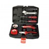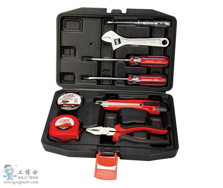 1-重型歐式活扳手6' 1-碳鋼鋼絲鉗6' 1-一字彩條螺絲批6x100mm 1-十字彩條螺絲批#2x100mm 1-普通型測電筆140mm 1-塑柄美工刀18mm 1-卷尺3m x16mm 1-電工膠帶黑色18mmx9m 外徑尺寸: 270x185x54mm 該組套工具配備:螺釘和螺母的裝配、工件的夾持和切割、測量等功能。適用于居家維修、物業(yè)管理、水電工程、工廠車間、設備配套等。