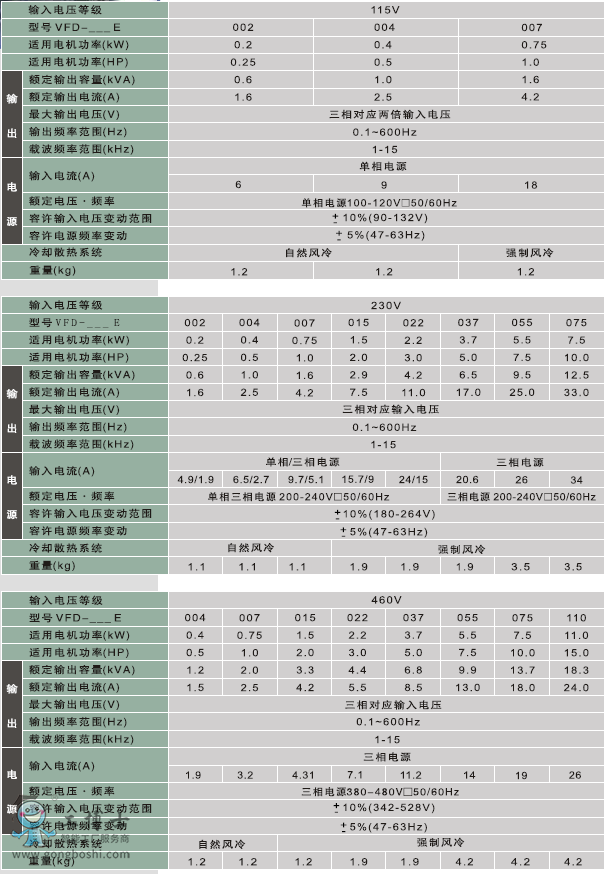 VFD007E21C,230V/1P,0.75kW,VFD-E,臺達模塊化變頻器