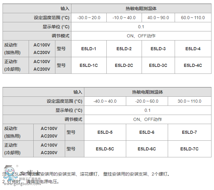 歐姆龍溫控器 E5LD-3C 熱敏電阻測溫體 正作用 40~90度