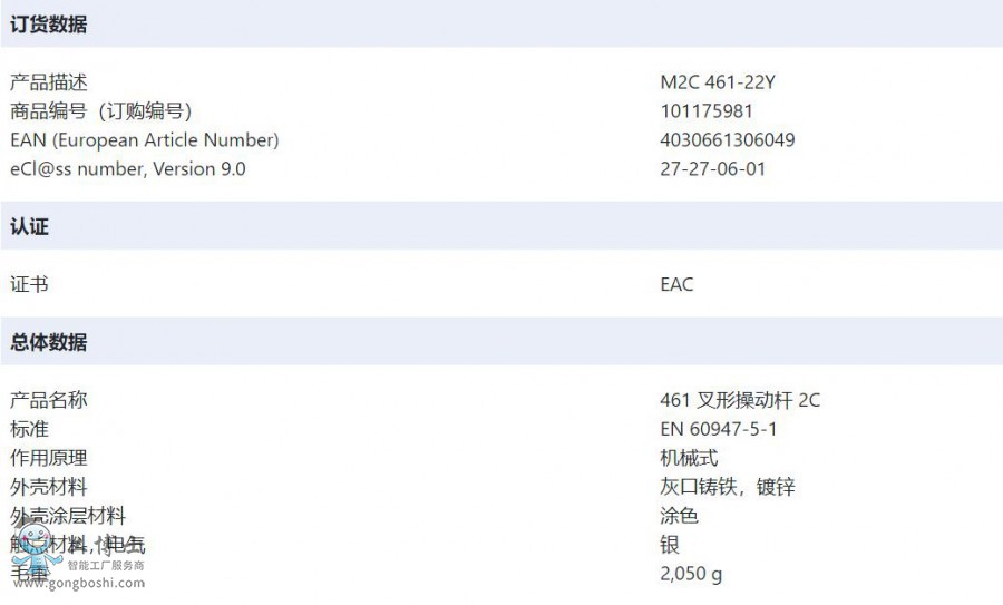 M2C 461-22Y施邁賽SCHMERSAL中型限位開關461叉形操動桿2C系列可開增值專票