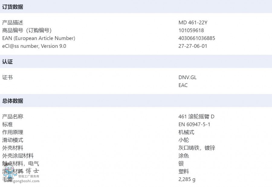 MD 461-22Y施邁賽SCHMERSAL中型限位開關461滾輪搖臂D系列可開增值專票