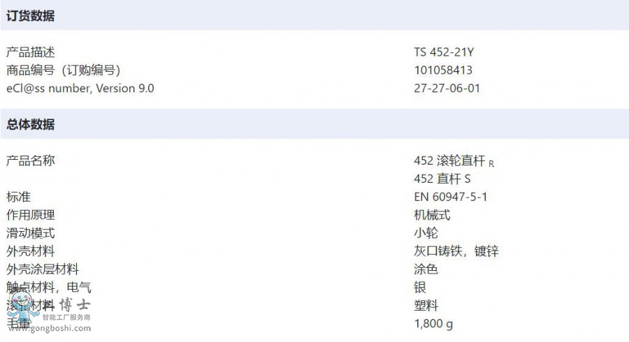 TR 452-21Y施邁賽SCHMERSAL中型限位開關452滾輪直桿R系列可開增值專票