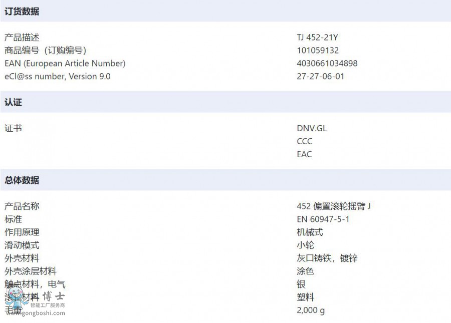 TJ 452-21Y施邁賽SCHMERSAL中型限位開關452偏置滾輪搖臂J系列可開增值專票