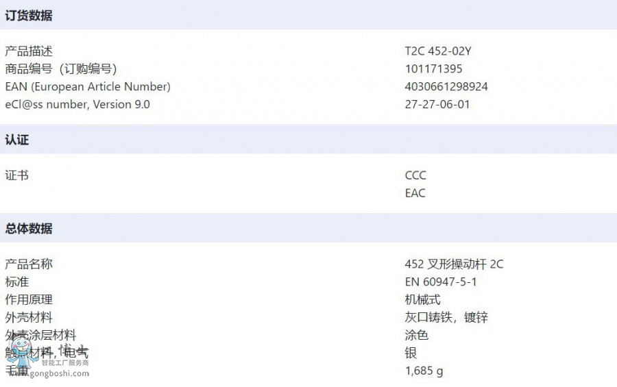 T2C 452-02Y施邁賽SCHMERSAL中型限位開關(guān)452叉形操動(dòng)桿2C系列可開增值專票
