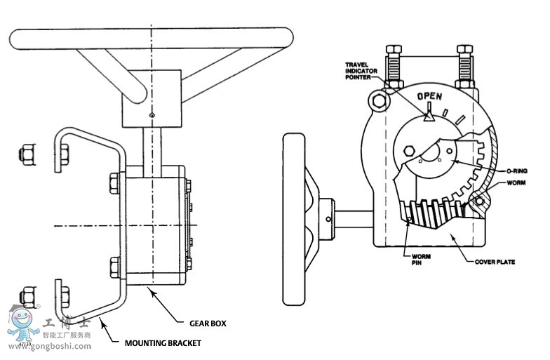 作。 M 系列執行機構由機體外殼、蓋、渦輪、輸入軸和手輪組成,并且機