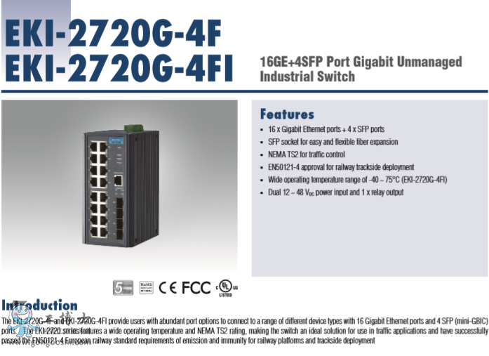研華EKI-2720G 非網管型工業以太網交換機16GE+4SFP
