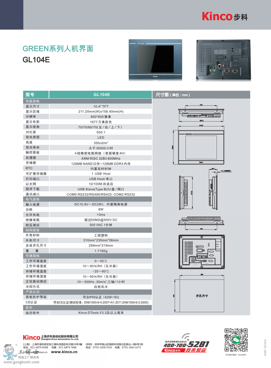 Kinco步科觸摸屏GREEN系列GL104E|支持編程調試|售后維修 |