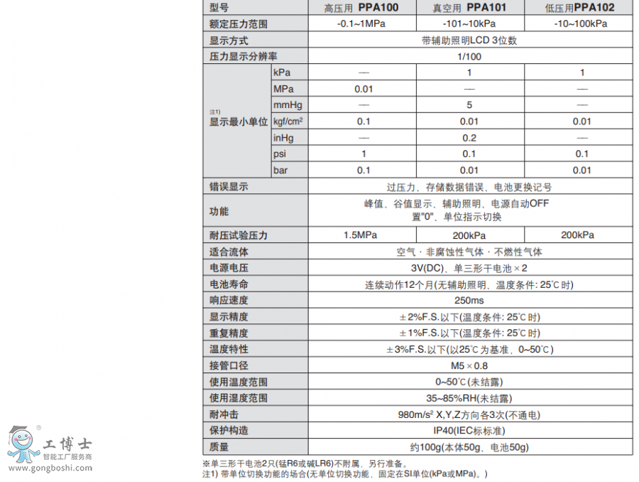 SMC壓力表 小型數字式壓力表 PPA102