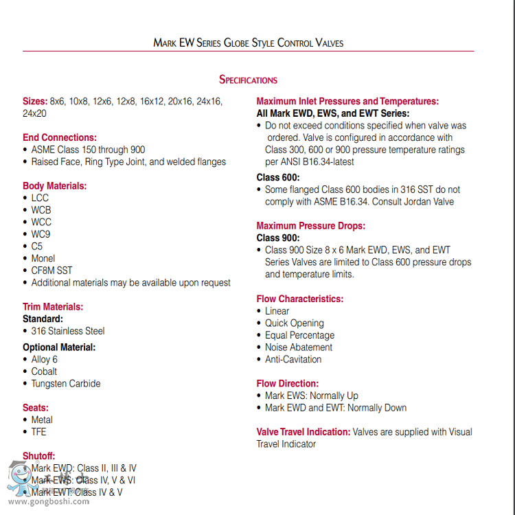 這個系列的特點是大的端部連接和擴大的內部流腔。系列產品有8x6,10x8,12x6和12x8,16x12,20x16,24x16和24x20英寸大小。***個數字表示線型大小,第二個數字表示修剪和閥蓋尺寸。