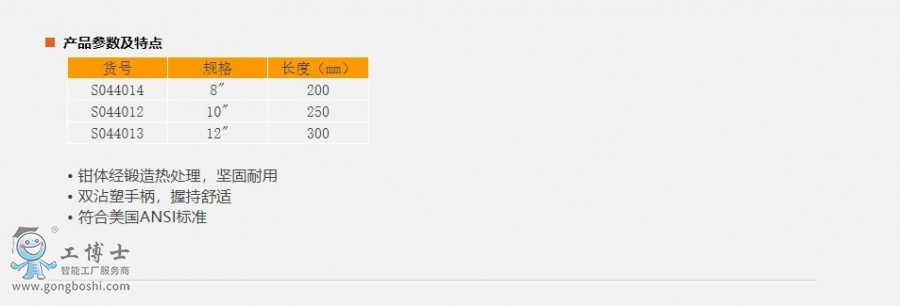 鋼盾水泵鉗 貨號:S044012 S044013 S044014