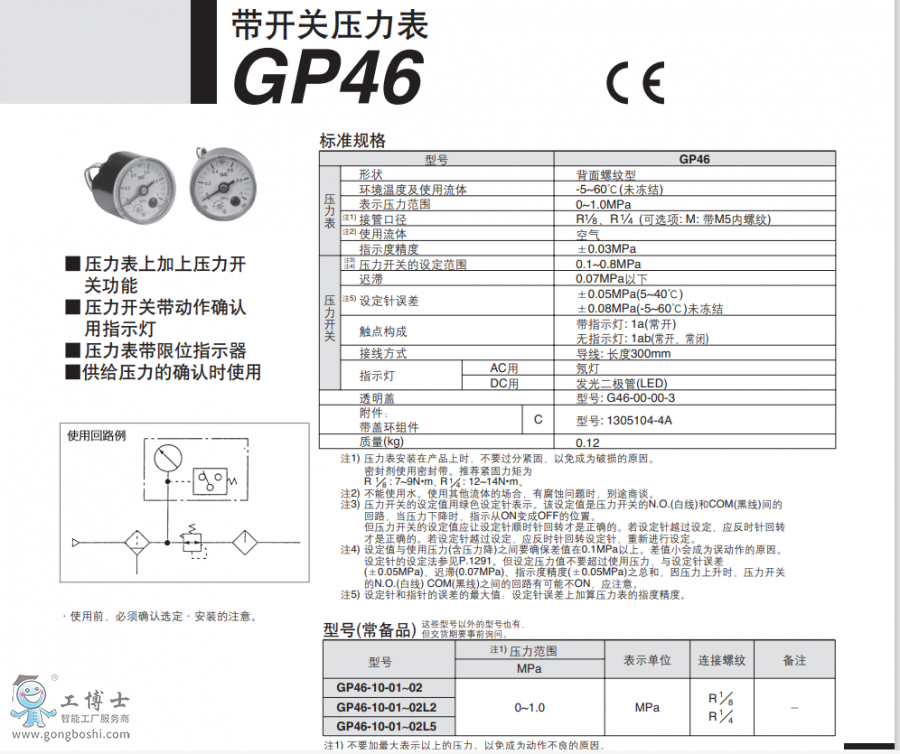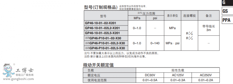 SMC帶開關壓力表 GP46系列 GP46-10-01-02