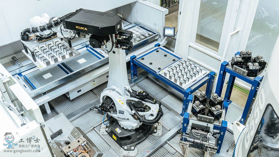 KUKA 機器人在生產單元中負責為銑床進行上料以及自動執行工件的后加工作業