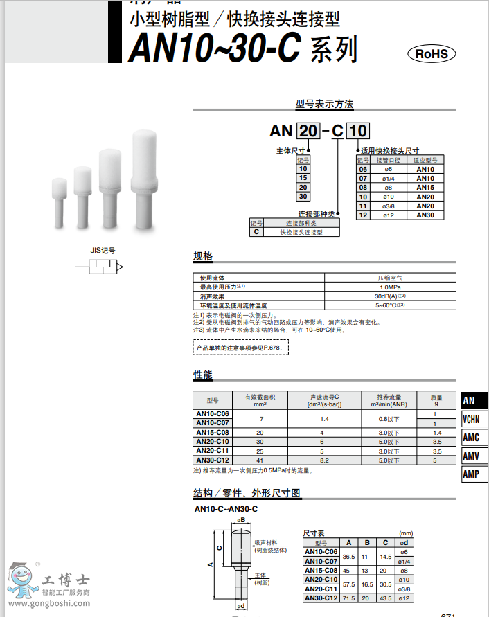 SMC消聲器 小型樹脂型 AN10-30-C系列