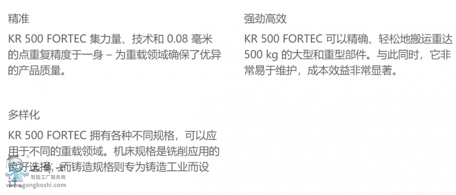 庫卡KR 500 FORTEC機器人優點: