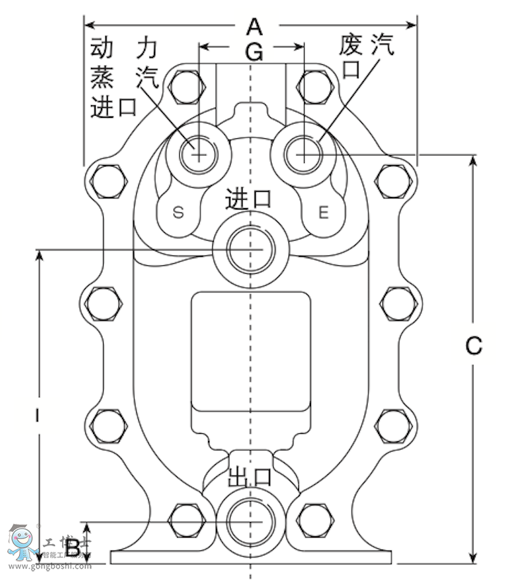 冷凝水出口的中心線。 如出口垂直向下,則為從疏水閥泵的基座至出口面的高 度。