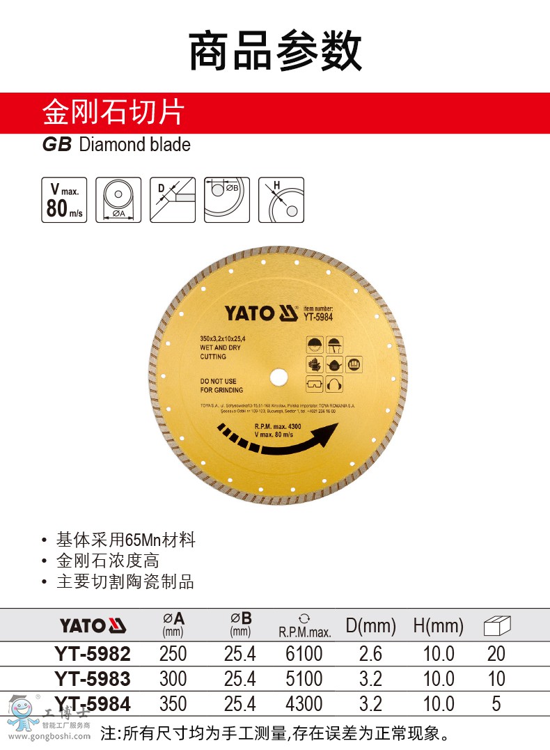YATO易爾拓工具金剛石切片YT-5982 YT-5983 YT-5984 |