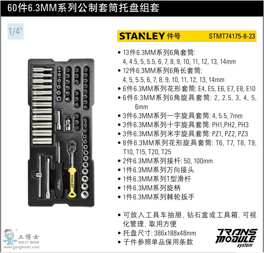 史丹利60件6.3MM系列公制套筒托盤組套STMT74175-8-23