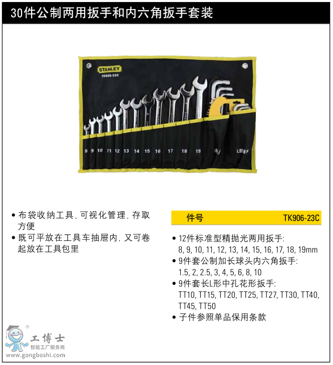 史丹利30件公制兩用扳手和內六角扳手套裝TK906-23C