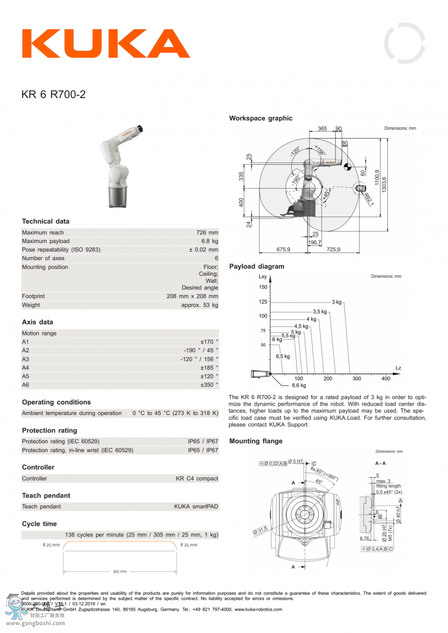 庫卡碼垛機器人KR 6 R700 sixx 產品參數: