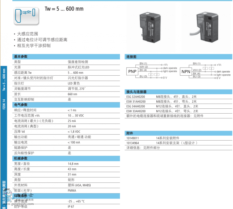 FZDK 14P5101/S14漫反射式光電傳感器-Baumer 堡盟光電開關傳感器現貨可開增票 |
