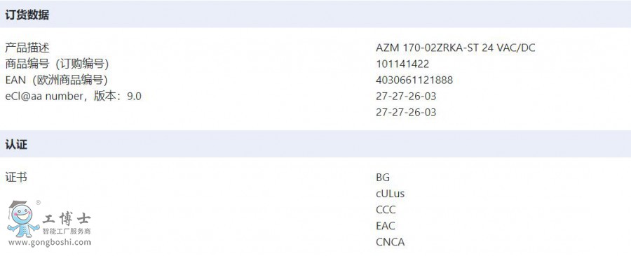 型號: AZM 170-02ZRKA-ST 24 VAC/DC