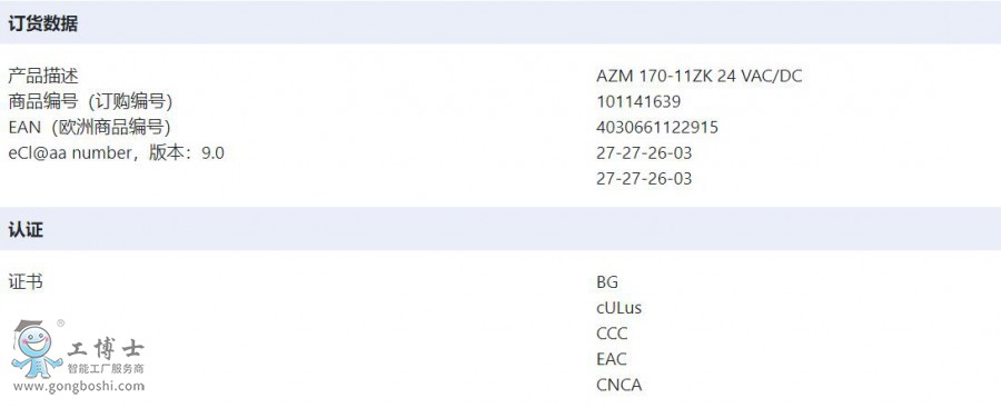 型號: AZM 170-02ZRKA-ST 24 VAC/DCAZM 170-11ZK 24 VAC/DC