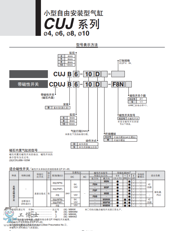 SMC 小型自由安裝型氣缸 CDUJB10-10DM-F8NS