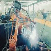 對固定在固定架上的摩托車車頭進(jìn)行焊接。