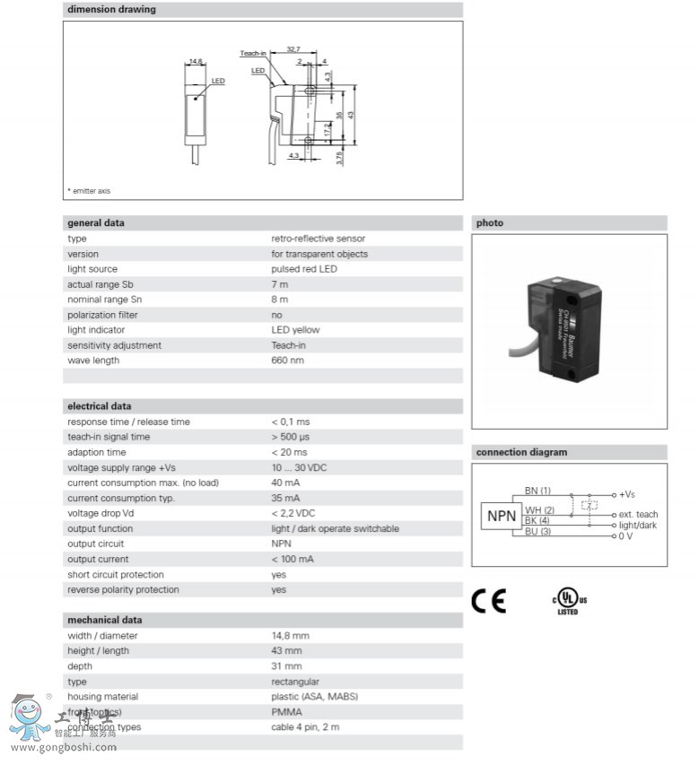 鏡反射式光電傳感器 |