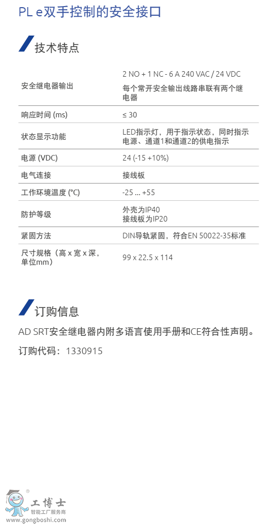 AD SRT雙手控制的安全繼電器。PL e雙手控制的安全接口模塊