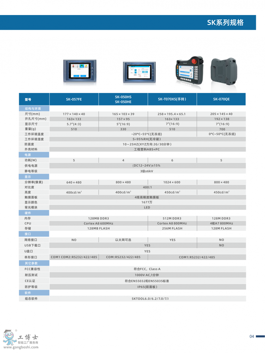 顯控觸摸屏SK系列產品參數