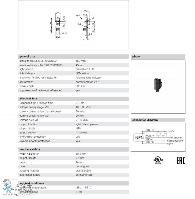 FVDK 10N5101/S35 光纖放大器-Baumer 堡盟 輸出電路:NPN 輸出功能:亮通
