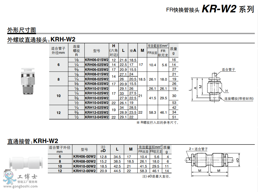 SMC FR快換管接頭 外螺紋直通接頭 KRH08-01SW2