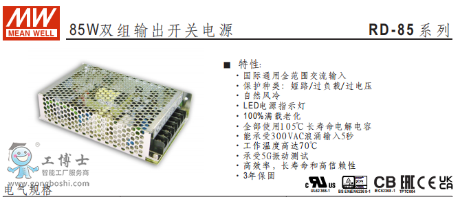 明緯電源RD-85W雙組輸出開關電源現(xiàn)貨可開增票