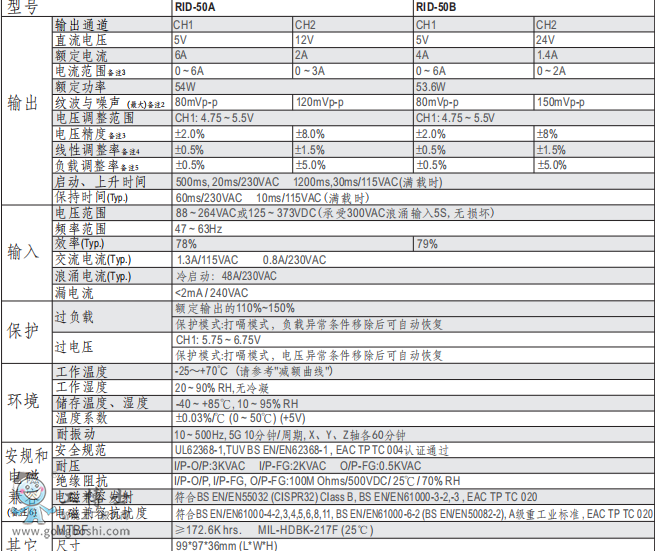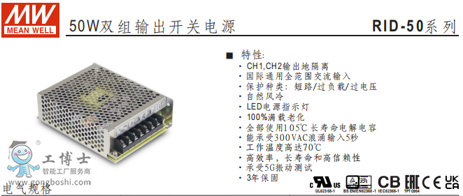 明緯電源RID-50開(kāi)關(guān)電源現(xiàn)貨A系