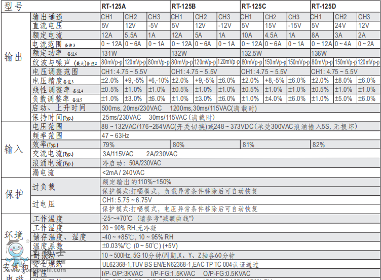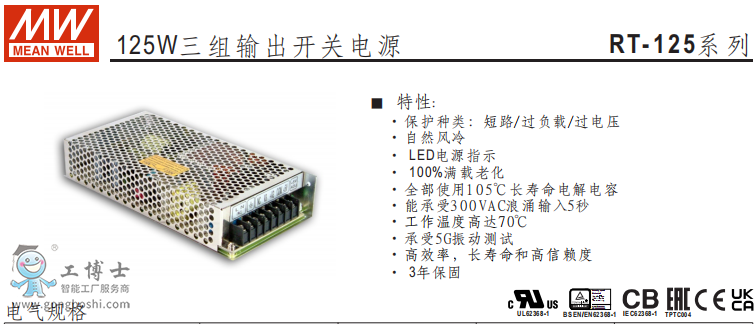 明緯電源RT-125三組輸出開關電源現貨A系