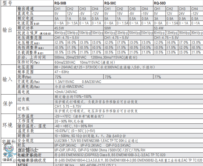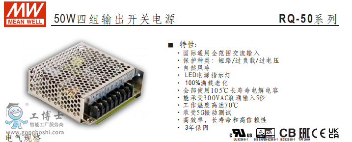 明緯電源RQ-50W四組輸出開關電源現貨D系