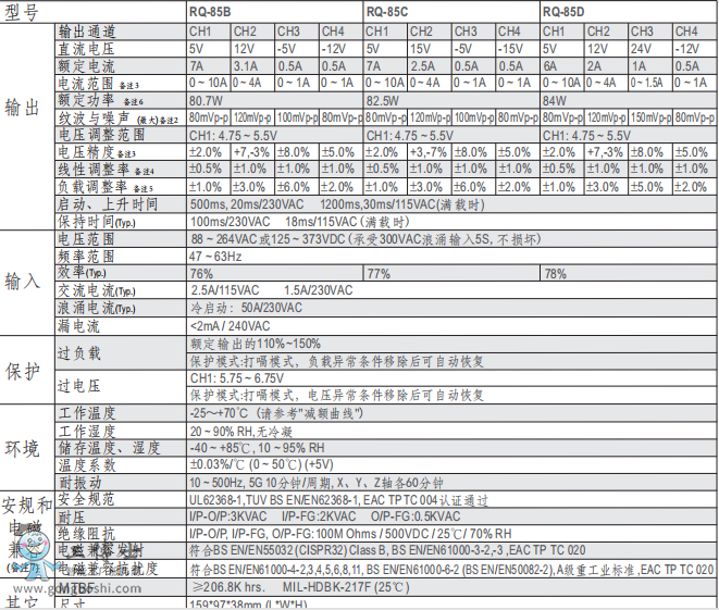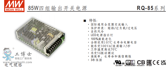 明緯電源RQ-85W四組輸出開關電源現貨c系