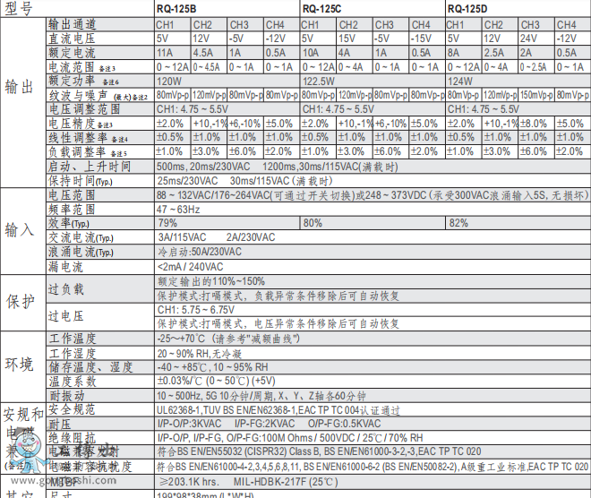 明緯電源RQ-125W四組輸出開關電源現貨D系
