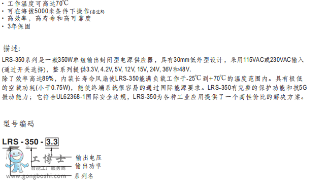 明緯電源LRS-350-3.3V電源供應器現貨