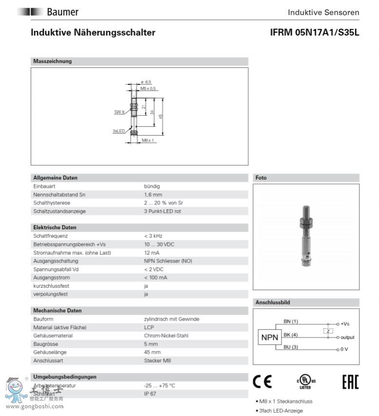 Baumer/堡盟IFRM 05P17A1/S35L電感式接近開關傳感器