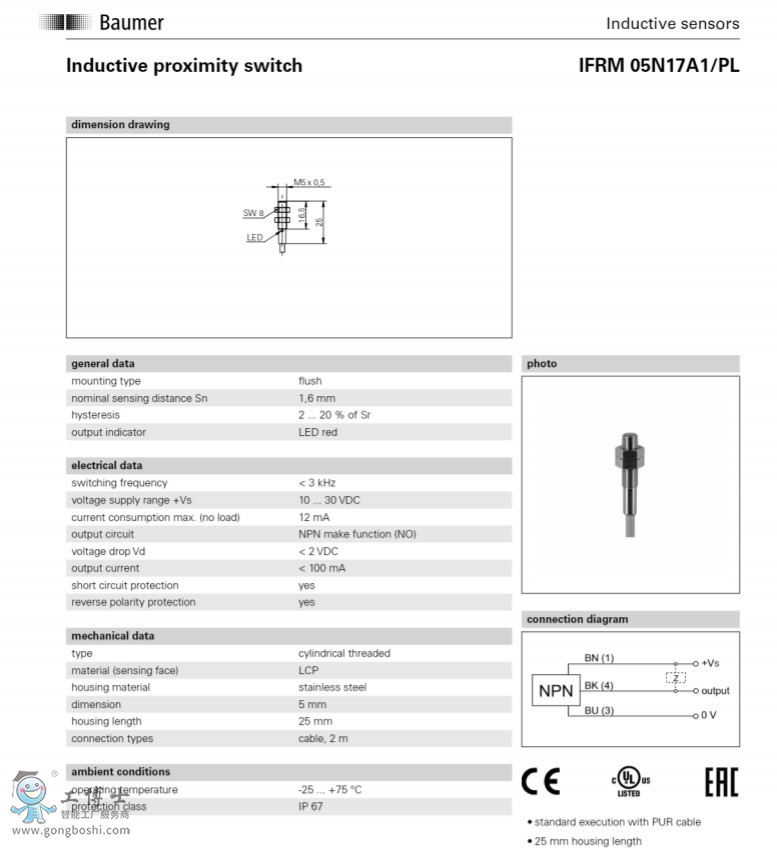 Baumer/堡盟IFRM 05P17A1/PL電感式接近開關傳感器